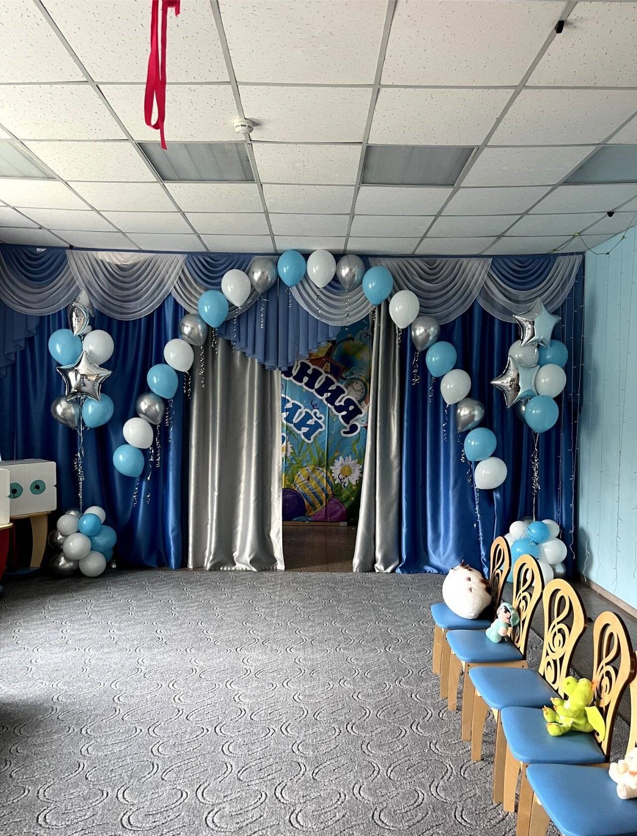 Оформление воздушными шарами выпускного в детском саду №14025. Южно-Сахалинск. Фабрика Смеха