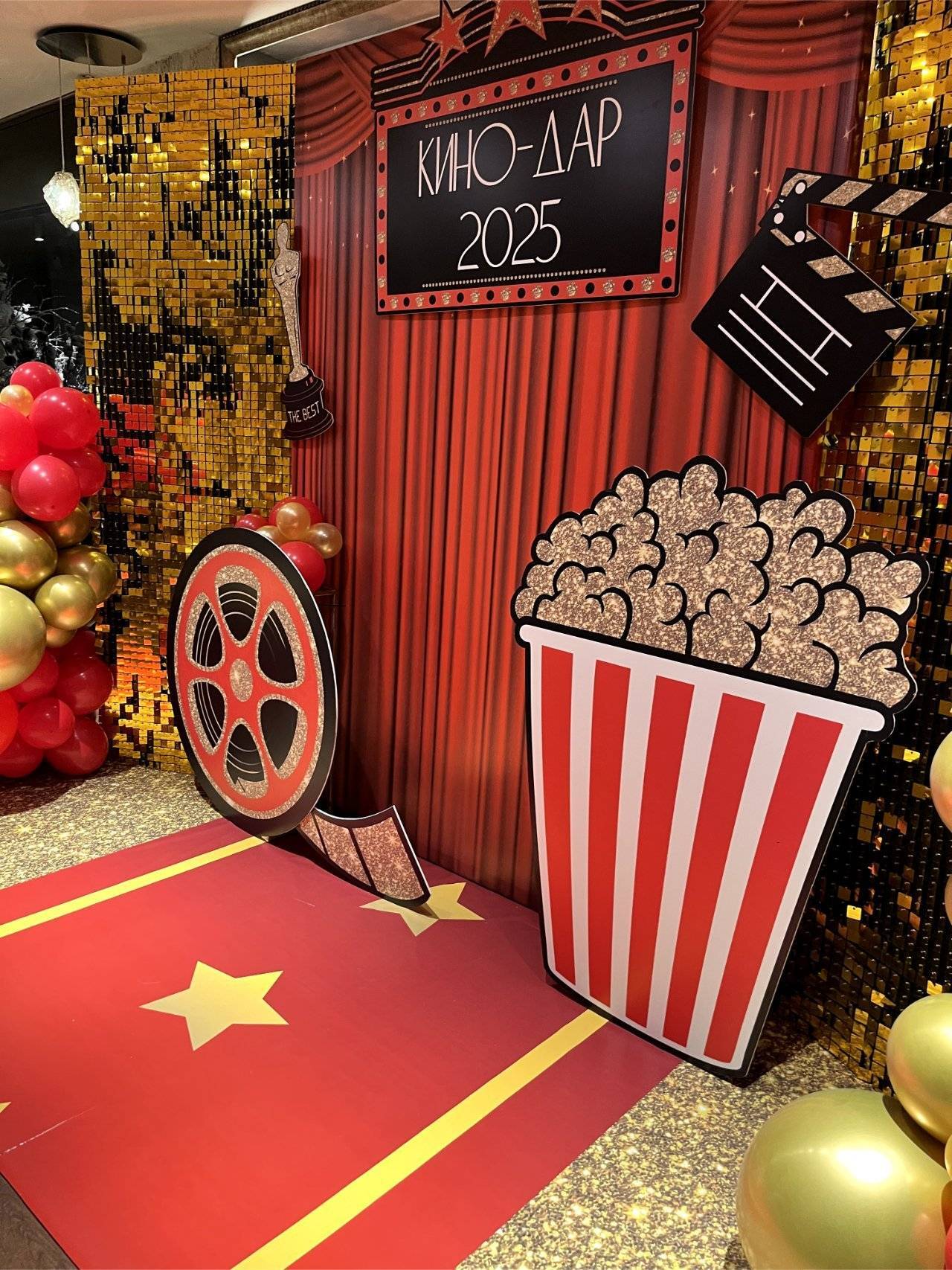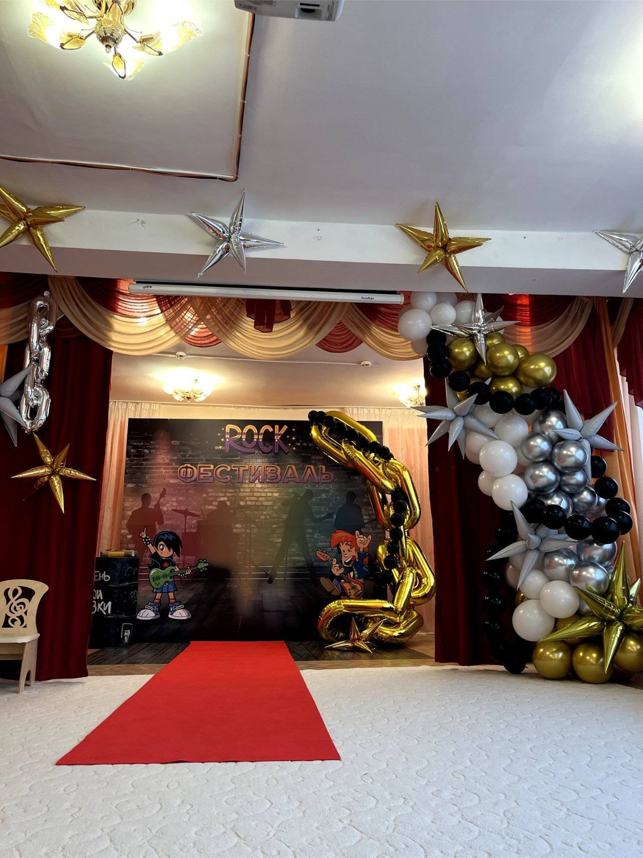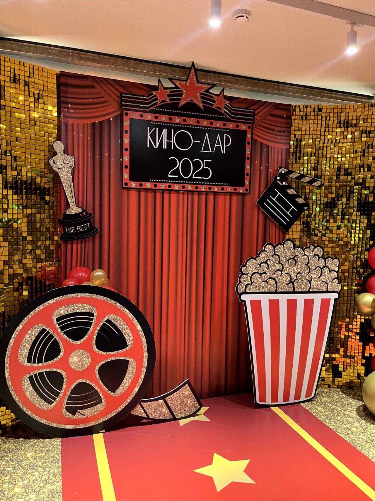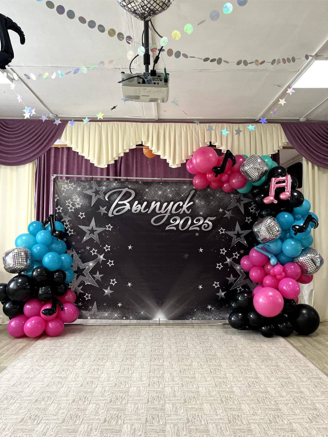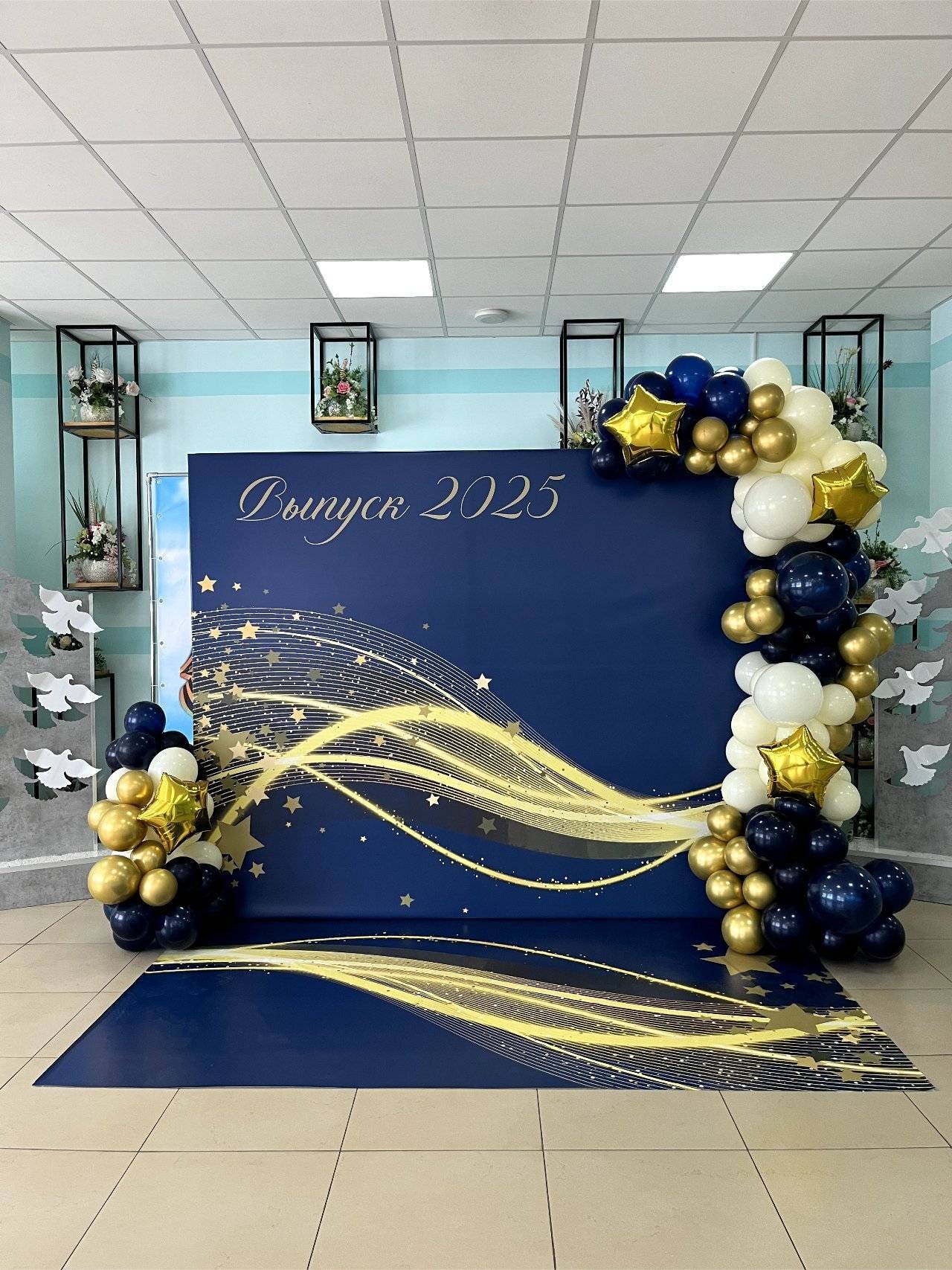 Оформление шикарной синей фотозоны в Южно-Сахалинске. Павловец Нина