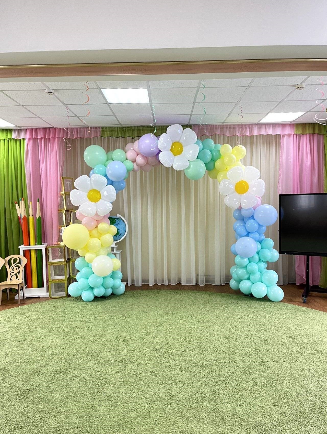 Оформление воздушными шарами выпускного в детском саду №14029. Южно-Сахалинск. Фабрика Смеха